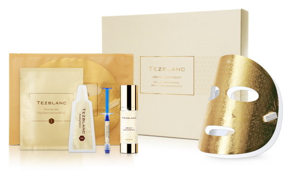 해당 상품은 미세전류를 활용한 스킨케어 솔루션 ‘Tissue X™’ 기술을 더한 듀얼 마스크 시스템이다. 99.9% 순금, 줄기세포배양액, 저분자 히알루론산, 리포솜 세라마이드가 주요 성분이다.
