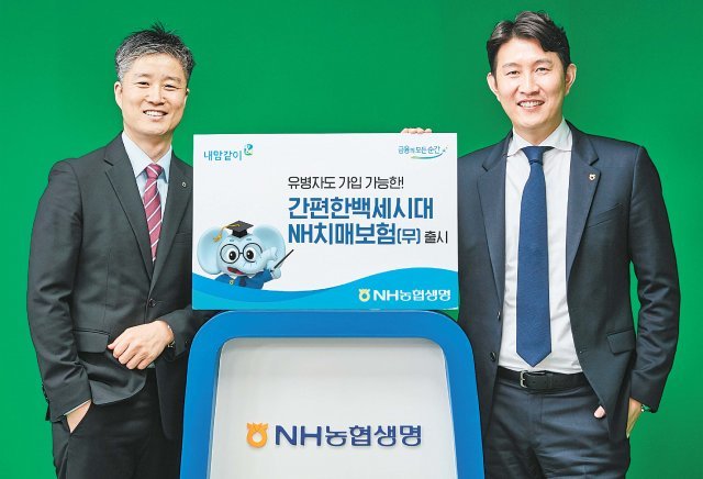 ‘간편한백세시대 NH치매보험’은 고령자나 농업인이 많은 농협생명의 고객 특성을 충분히 반영한 상품이다. 당뇨 고혈압 등 만성질환이나 치료 이력이 있는 고령자라도 실제 치매와 관련 있는 두가지 질문에만 해당하지 않으면 가입할 수 있다. 가벼운 경도 치매부터 중증 치매까지 단계별로 보장하고, 중증 치매 진단이 확정되면 보험료 납입이 면제되고 매월 120만 원씩 종신토록 간병생활자금이 지급된다. 보험료는 40세 남자, 20년납, 100세 만기 기준으로 10만3700원, 40세 여자는 10만6900원이다(가입금액 1000만 원 기준).