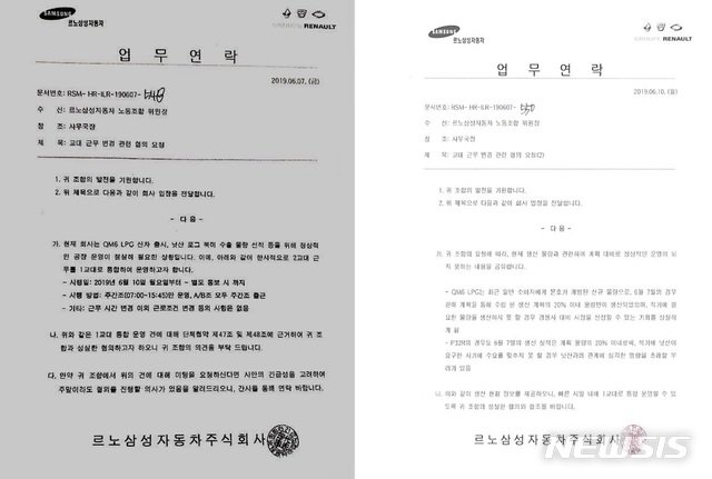 11일 르노삼성 노사에 따르면 르노삼성 사측은 지난 7일과 10일 두 차례 공문을 보내 노조에 1교대 통합 운영을 요구했다.