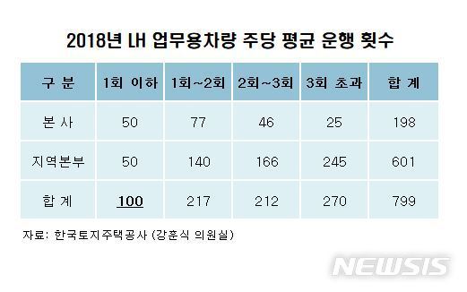 특히 LH는 구입 또는 임차한 업무용 차량 일부는 주 평균 1회 이하로 운영한 것으로 나타났다. 이 숫자는 지난해에만 총 100대로 전체 업무용 차량의 12.5%에 달한다.