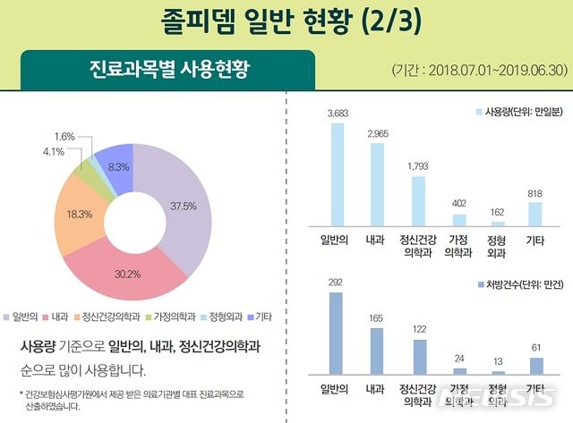 작년 7월부터 올 6월까지 1년 간 의료용 마약류를 처방받은 환자는 1784만명으로, 국민 2.9명 중 1명에 달했다.