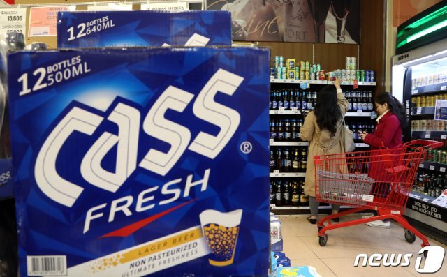 오비맥주가 다음달 4일 부터 카스, 카프리 등 주요 맥주 제품의 공장 출고가를 평균 5.3% 인상한다고 밝힌 26일 서울의 한 대형마트를 찾은 고객들이 주류매대를 살펴보고 있다. 공장 출고가 인상에 따라 대표 제품인 ‘카스’ 병맥주 500㎖의 출고가는 1천147원에서 1천203.22원으로 56.22원(4.9%) 오른다.오비맥주의 출고가 인상은 2016년 11월 이후 약 2년 5개월 만이다. © News1
