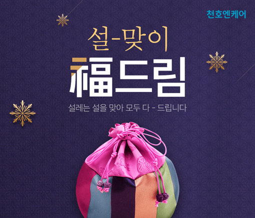 천호엔케어(대표 이승우)가 최대 50%까지 할인하는 ‘설 맞이 복(福)드림’ 이벤트를 27일까지 실시한다.