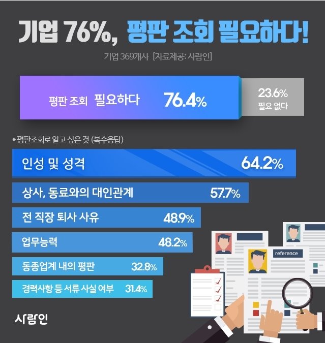 "평판조회 실시" 37.1%..."평판 조회 결과만으로 불합격 경험" 64.2%