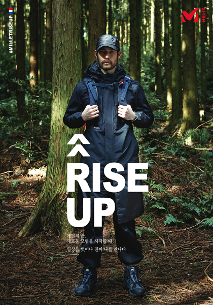 ‘RISE UP’은 1950년대 산 개척자들의 사고방식에 기반을 두고 그 정신을 내포한 슬로건으로 99년의 긴 등산 역사를 지닌 밀레가 걸어온 길과 방식, 의지를 담고 있다.