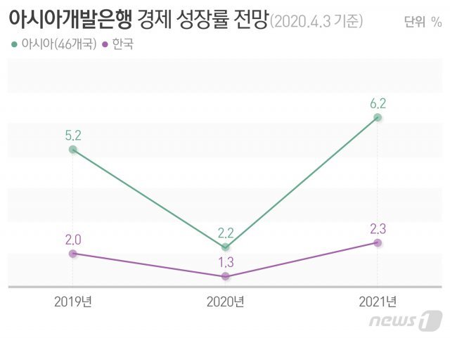 ADB는 3일 ‘2020년 아시아 역내 경제전망(Asian Development Outlook)’ 보고서를 통해 올해 우리나라를 포함한 아시아 46개국의 올해 경제 성장 전망치를 수정 발표했다.