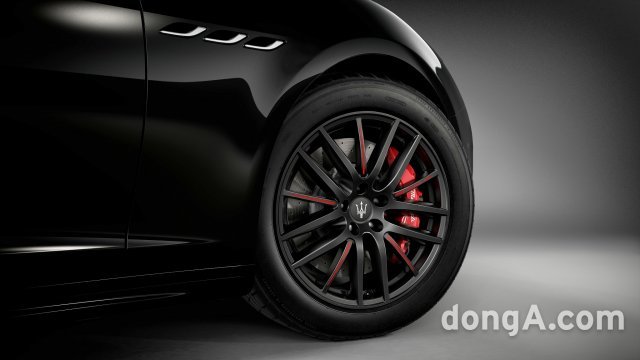 기블리 리벨레 에디션 블랙 색상 외관은 레드 브레이크 캘리퍼와 어우러진다. 이는 마세라티 라인업 최초 레드&블랙 투톤 인테리어 디자인과 궁합을 이룬다.