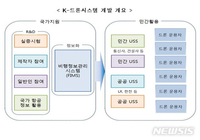 K-드론시스템은 비행 계획 관리와 위치추적 등 모니터링을 제공하는 것으로, 일반 항공기로 치면 관제기관의 역할을 한다.