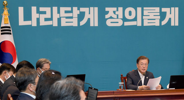 문재인 대통령이 10일 오후 청와대 여민관에서 열린 수석보좌관회의에서 모두발언을 하고 있다. 청와대 사진기자단