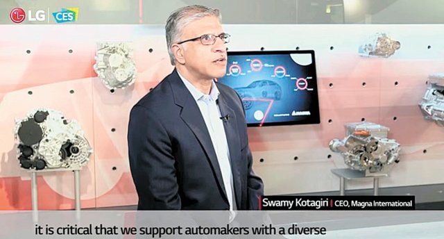스와미 코타기리 마그나 인터내셔널 최고경영자(CEO)가 12일 공개된 온라인 영상을 통해 ‘LG 마그나 e파워트레인’에 대한 기대를 밝히고 있다. LG전자 유튜브 캡처