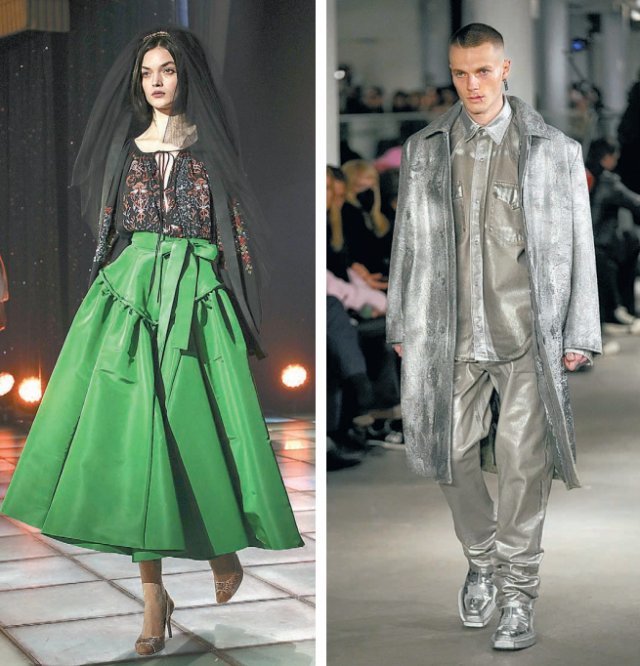 5일(현지 시간) 프랑스 파리에서 열린 ‘2022 파리 패션위크’에서 모델들이 영국 패션 브랜드 비비안웨스트우드(왼쪽 사진)와 프랑스 패션 브랜드 베트멍의 새로운 레이블인 VTMNTS의 가을겨울 제품을 선보이고 있다. 파리 패션위크는 뉴욕, 런던, 밀라노 패션쇼와 함께 세계 4대 패션쇼로 꼽힌다.