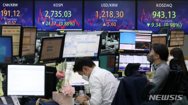 이날 전 거래일(2735.03)보다 20.33포인트(0.74%) 내린 2714.70에 시작했다. 이후 낙폭을 키우면서 오전 9시28분 기준 35.34포인트(1.29%) 떨어진 2699.69를 나타냈다.