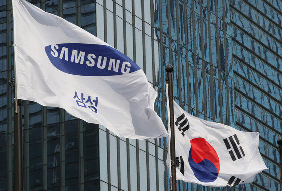 서울 서초동 삼성전자 서초사옥 앞 국기게양대에 내걸린 태극기와 삼성 깃발이 바람에 날리고 있다. 2021.8.12/뉴스1