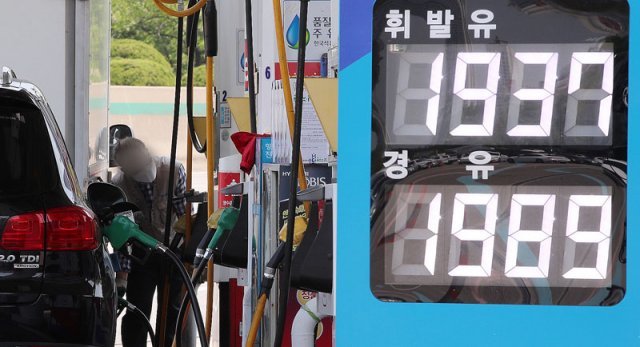 16일 서울 서초구의 한 주유소에 경유 가격이 휘발유 가격보다 높게 표기돼 있다. 경유 가격이 휘발유 가격을 앞지르는 현상이 지속되자, 정부는 15일 경유 유가연동 보조금 지급 기준 가격을 현행 L당 1850원보다 낮추기로 했다.