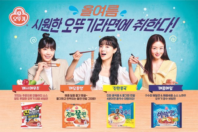 새 콘셉트에 부합하는 모델도 발탁했다. ㈜오뚜기는 드라마 ‘술꾼도시여자들’의 배우 이선빈, 한선화, 정은지를 모델로 기용하고 신규 광고를 온에어했다. 세 배우가 지닌 유쾌하고 당당한 매력이 ‘진비빔면 배사매무초’의 시원하게 매운맛과 잘 어울린다고 판단해 모델로 선정했다는 설명이다.