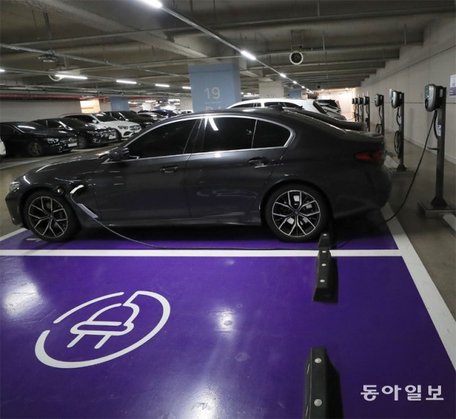 한국전력의 전기차 충전요금 특례 할인이 종료되면서 9월부터 충전요금이 일제히 인상됐다. 1일 서울 종로구의 한 건물 주차장에서 전기차들이 충전을 하고 있다.