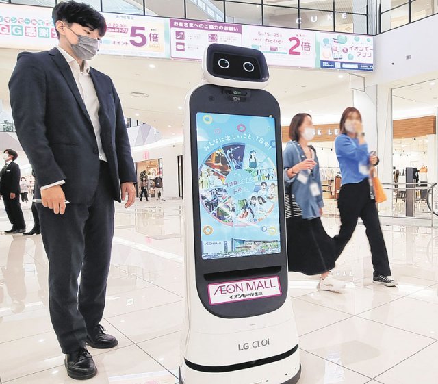 최근 일본 이온몰의 기후현 도키점에 공급된 ‘LG 클로이 가이드봇’이 쇼핑몰 내부를 이동하고 있다. 이 로봇은 27형 터치 디스플레이를 전·후면에 탑재해 맞춤형 광고를 보여주고 일본어, 영어, 중국어 등 다국어 안내도 지원한다. 인공지능(AI) 기반의 자율주행과 장애물 회피 기능이 있어 스스로 안전한 방향으로 경로를 변경할 수 있다. LG는 지난달 이온몰 나리타점에도 같은 로봇을 공급했다.