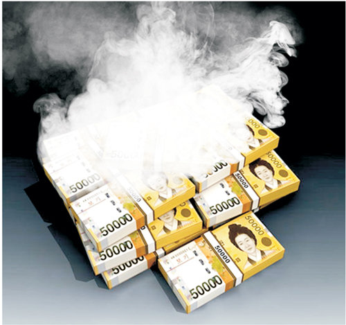 최근 채권시장에서는 발행 금리가 급등하고 투자 수요는 위축되면서 신규 회사채를 발행해 만기 회사채를 갚는 ‘차환’ 발생이 급격히 줄어들고 있다. 올해 상반기 월별로 8조 원 안팎이었던 회사채 발행액은 8, 9월 5조3000억 원 수준으로 줄더니 이달 들어선 1조4000억 원 수준에 머물고 있다. 특히 이달 회사채 발행액에서 상환액을 뺀 순발행액은 ―3조8127억 원에 그쳤다. 시중 유동성이 4조 원 가까이 증발한 셈이다.