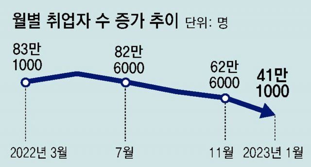 정부는 경기 침체에 따른 고용 악화가 갈수록 심화될 수 있다고 보고 있다. 서운주 통계청 사회통계국장은 “경기 위축 영향이 지속적으로 고용 동향에 반영될 가능성이 있다”고 설명했다. 기획재정부도 “경기 둔화, 생산연령인구 감소 등 하방 요인이 상존해 2월부터 취업자 수 증가 둔화 폭이 확대될 가능성이 있다”고 내다봤다. 이에 따라 향후 추경 편성 등 경기 부양이 필요하다는 지적도 나온다. 하준경 한양대 경제학부 교수는 “고용 둔화에 고물가가 겹쳐 실질소득이 지나치게 감소하는 걸 예방하기 위한 경기부양 정책이 필요할 수 있다”고 말했다.