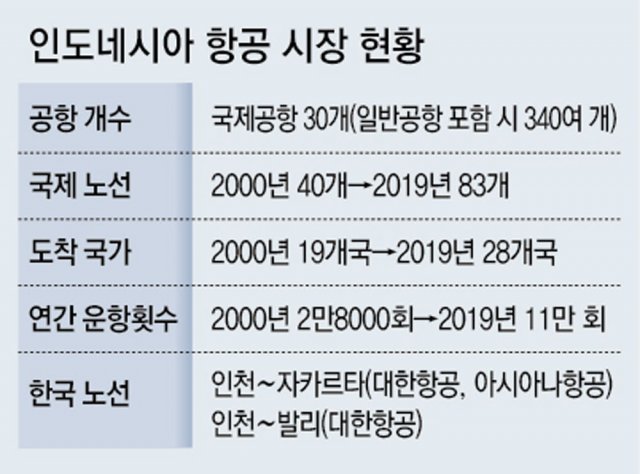 현재 인도네시아를 오가는 국내 항공사는 대한항공과 아시아나항공뿐이다. 인천∼자카르타 노선은 대한항공과 아시아나항공이, 인천∼발리 노선은 대한항공만 취항했다. 그런데 인도네시아 노선이 늘어날 가능성이 열리자 저비용항공사(LCC)들이 사활을 거는 분위기다.