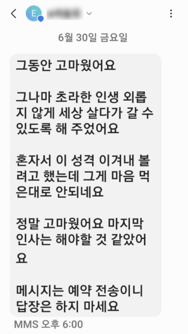 서 씨의 마지막 메시지. 유족 제공 유족들은 서 씨가 코로나 이후 경제적으로 힘들어 하던 중 전세사기 소식을 듣게 되면서 극단적 선택을 한 것으로 보고 있다.