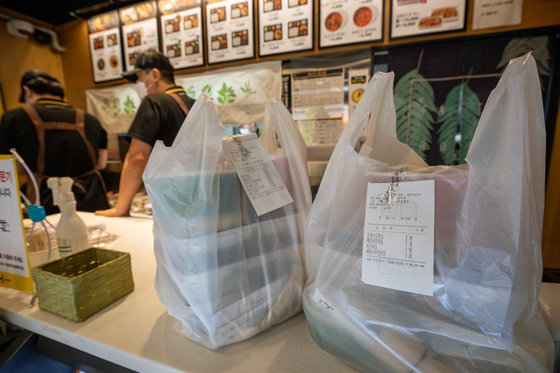 서울시내에서 점심시간 직장인 등이 포장한 음식을 들고 있다. /뉴스1 현재 포장주문 중개 수수료는 요기요만 적용하고 있다. 요기요는 구매 금액의 12.5%를 자영업자로부터 받는다. 이는 배달 수수료와 똑같은 수준이다. 배달이 이뤄지지 않는 만큼 소비자는 음식값만 지불한다.