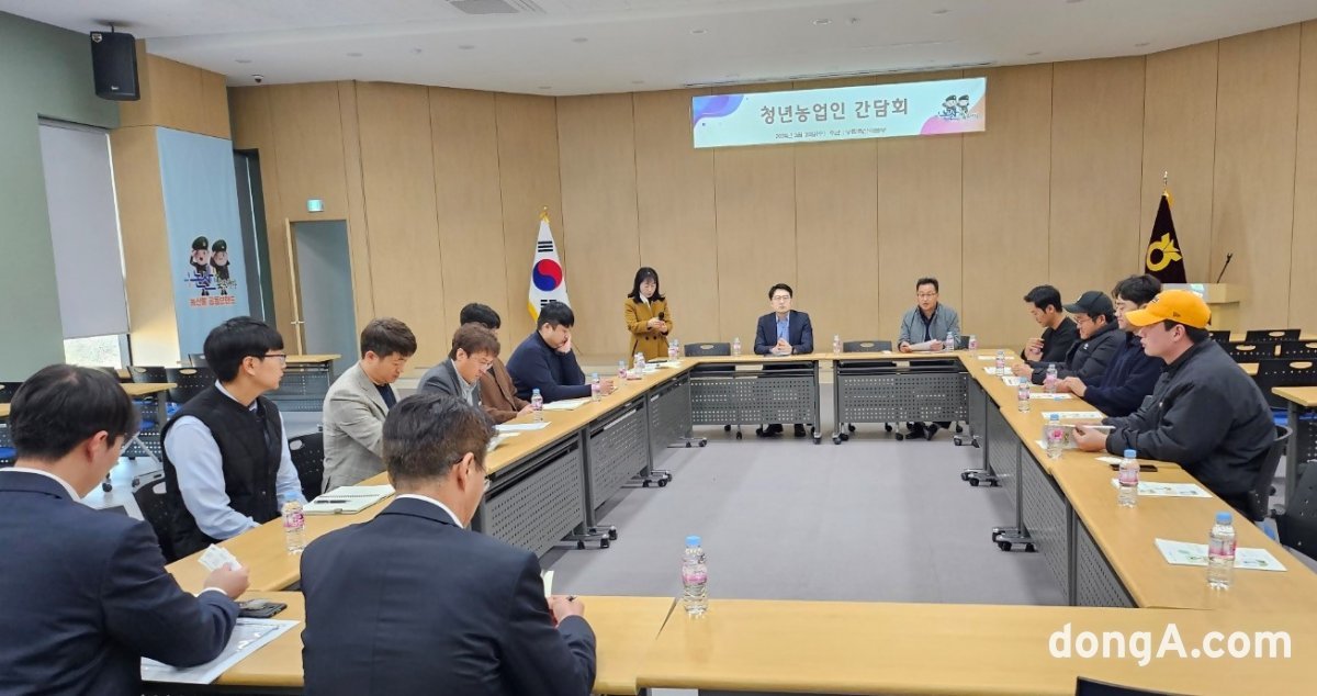이날 농신보, 농림축산식품부, NH농협은행, 지역 농·축협 등 관계자가 참석해 충청남도 청년농업인(한우사육, 딸기·버섯 등 재배) 10여 명을 대상으로 현장에서 겪는 애로·건의사항을 듣고 개선방안을 논의했다.