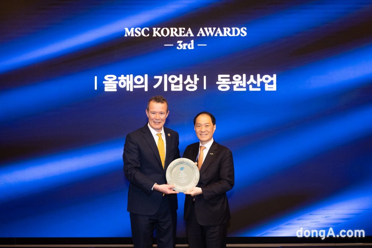 4일 동원산업은 \'제3회 MSC코리아 어워즈\'에서 \'올해의 기업상\'을 3년 연속 수상했다고 밝혔다.