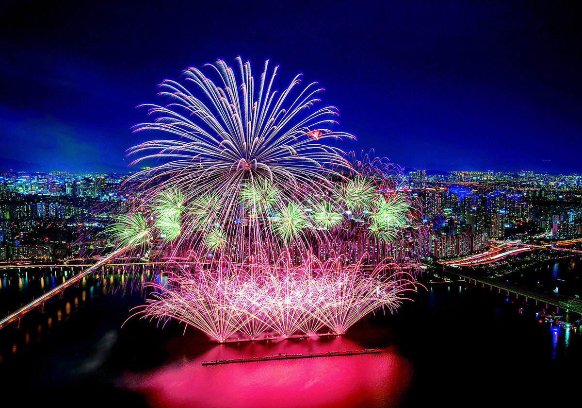 ‘서울세계불꽃축제 2023’에서 한화가 선보인 불꽃. 한화그룹 제공