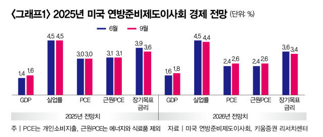 이런 상황에서 연준은 미국 고용 지표가 부진하게 나오자 9월 연방공개시장위원회(FOMC) 정례회의에서 기준금리를 25bp(1bp=0.01%p) 인하해 4.00∼4.25%로 조정했다. 성명서는 7월보다 완화적인 톤을 보였으며, 단기적으로 통화정책이 완화 기조로 기울 수 있음을 시사했다. 연준은 관세발(發) 인플레이션을 일시적 요인으로 보면서도 경계심을 유지했다.