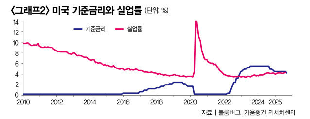 물론 미국 경기가 전반적으로 고르게 성장하는 것은 아니다. 정책적 수혜에서 배제된 산업이 존재하고, 저소득층을 중심으로 한 수요 부진 문제도 이어질 수 있다. 그러나 이러한 요인들이 경기침체로 직결될 가능성은 낮다. 인플레이션이 예상보다 더디게 하락하거나 관세 효과가 시차를 두고 반영될 수 있다는 점을 고려할 때 연준은 올해까지 보험성 금리인하를 단행한 뒤 내년에는 동결한 채 상황을 관망할 것으로 예상된다.
