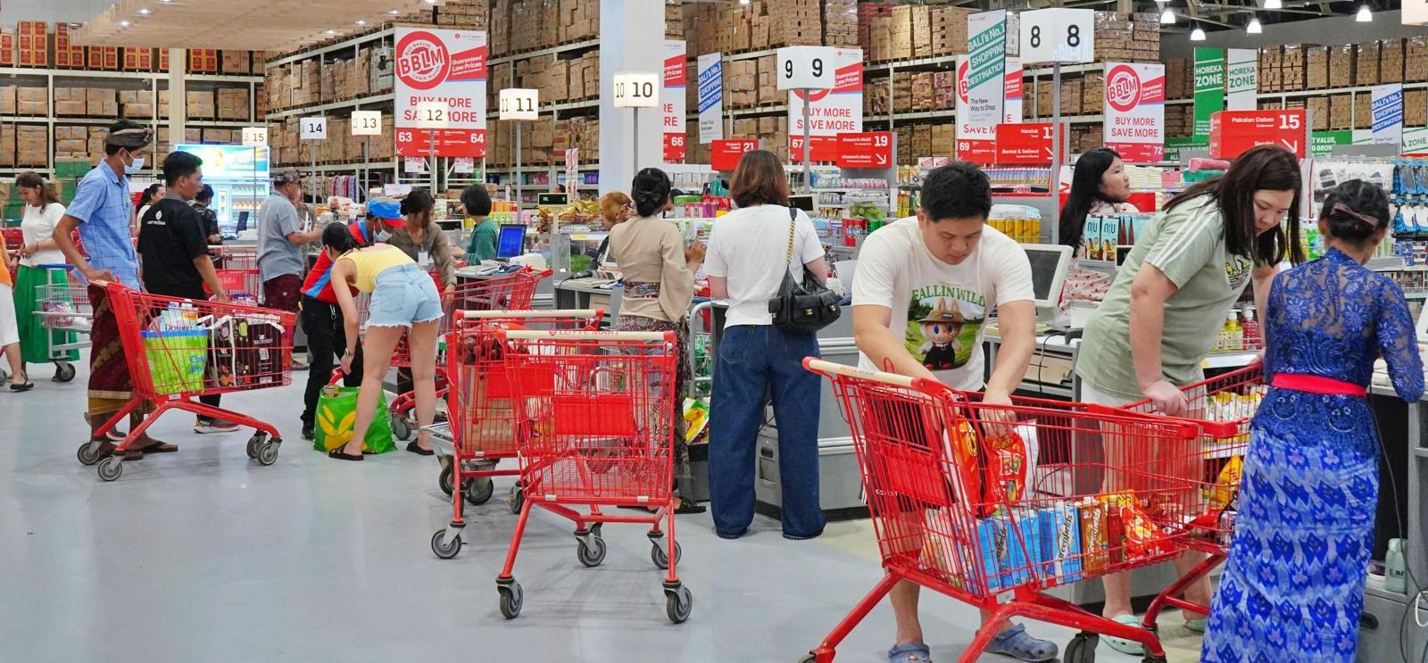 12일(현지 시간) 인도네시아 발리 덴파사르에 있는 롯데마트 발리점에서 고객들이 구매한 물건을 계산하고 있다. 롯데마트 제공