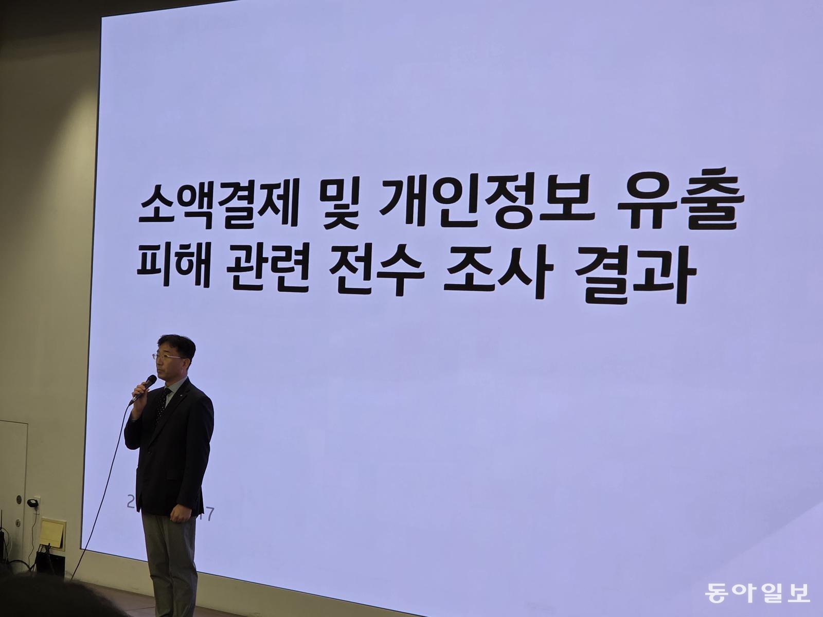 서울 종로구 KT 사옥에서 열린 KT 소액 무단결제 및 개인정보 유출 피해 관련 전수조사 결과 브리핑에서 서창석 KT 네트워크부문 부사장이 발언하고 있다. 최지원 기자 jwchoi@donga.com