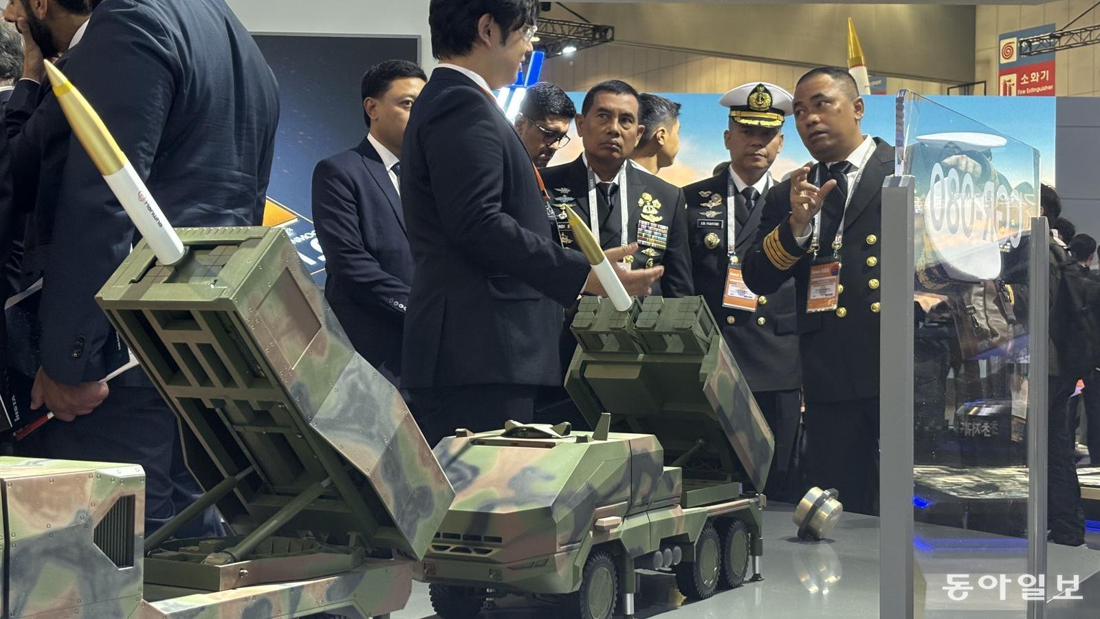2025 항공방위산업전시회(ADEX)가 열리고 있는 경기 고양시 킨덱스 전시장. 중동 국가 군복을 입은 고위 관계자는 한화 통합 전시관에서 한화에어로스페이스 관계자에게 조목조목 질문을 던지고 있었다. 한화 관계자는 “다양한 사거리의 미사일을 동시 장착해 발사할 수 있도록 설계되었기 때문에 별도 작업이나 비용이 필요하지 않다”고 답했다.