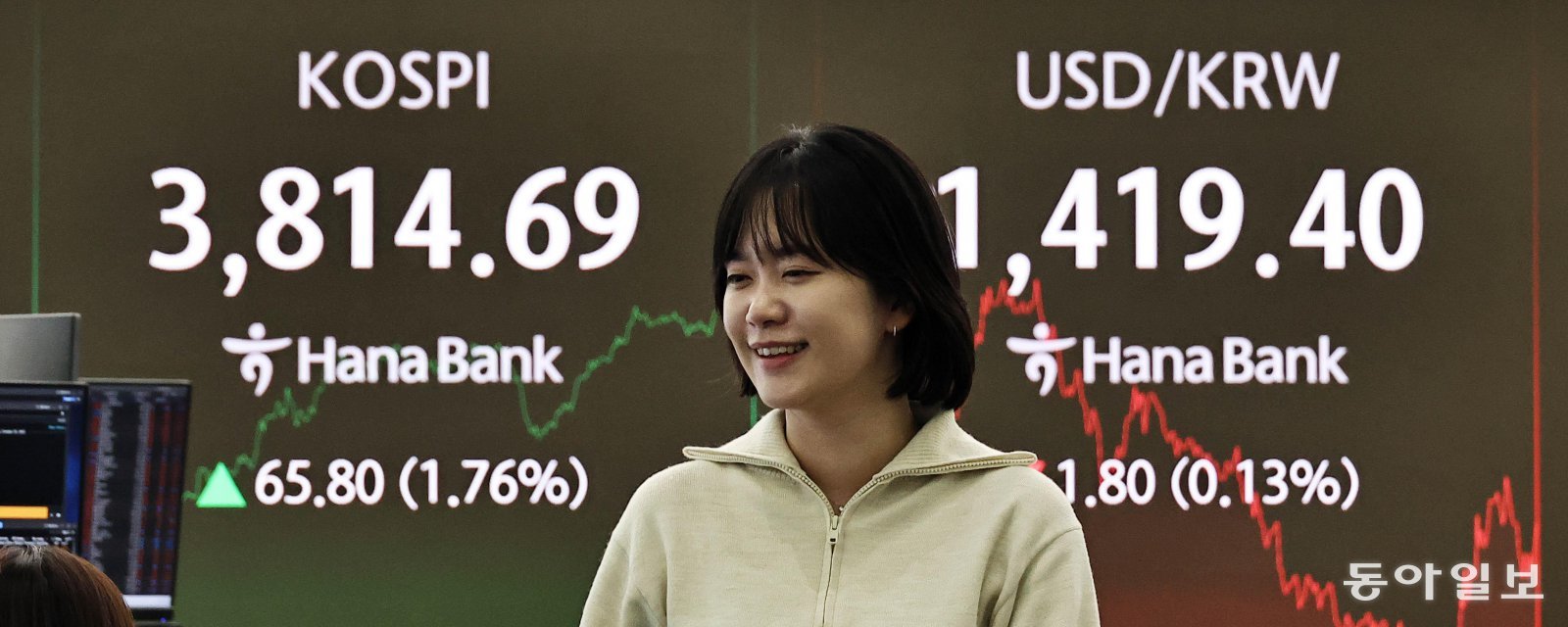 20일 서울 중구 하나은행 딜링룸 전광판에 코스피 종가와 원-달러 환율이 표시돼 있다. 이날 종가는 3,800을 돌파하며 사상 최고치를 경신했다. 양회성 기자 yohan@donga.com