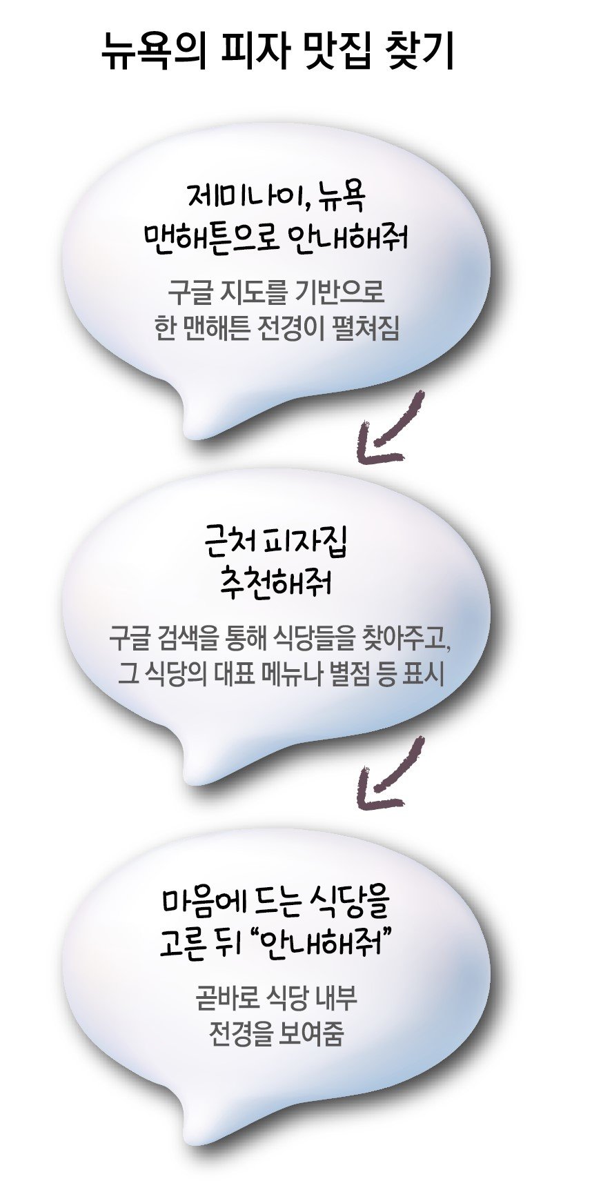 기자가 서울 마포구 ‘삼성스토어 홍대’에서 갤럭시 XR을 착용하고 “근처 한식집 괜찮은 데 있어?”라고 말하자 눈앞에 하늘에서 내려다보는 서울 홍대입구역 인근 지도가 펼쳐졌다. 이어 제미나이가 식당 리스트를 알려주고, 지도에 식당의 위치를 표시해 줬다. 추천해 준 식당 중 한 곳을 고르니, 해당 식당의 대표 메뉴와 별점이 한눈에 보였다. 식당 근처 길거리에서 걷는 것처럼 현실감 있는 ‘스트리트 뷰’도 생생하게 펼쳐졌다. 고개를 위, 아래, 왼쪽, 오른쪽으로 돌리면 현실과 똑같이 식당 근처 풍경이 보였다.