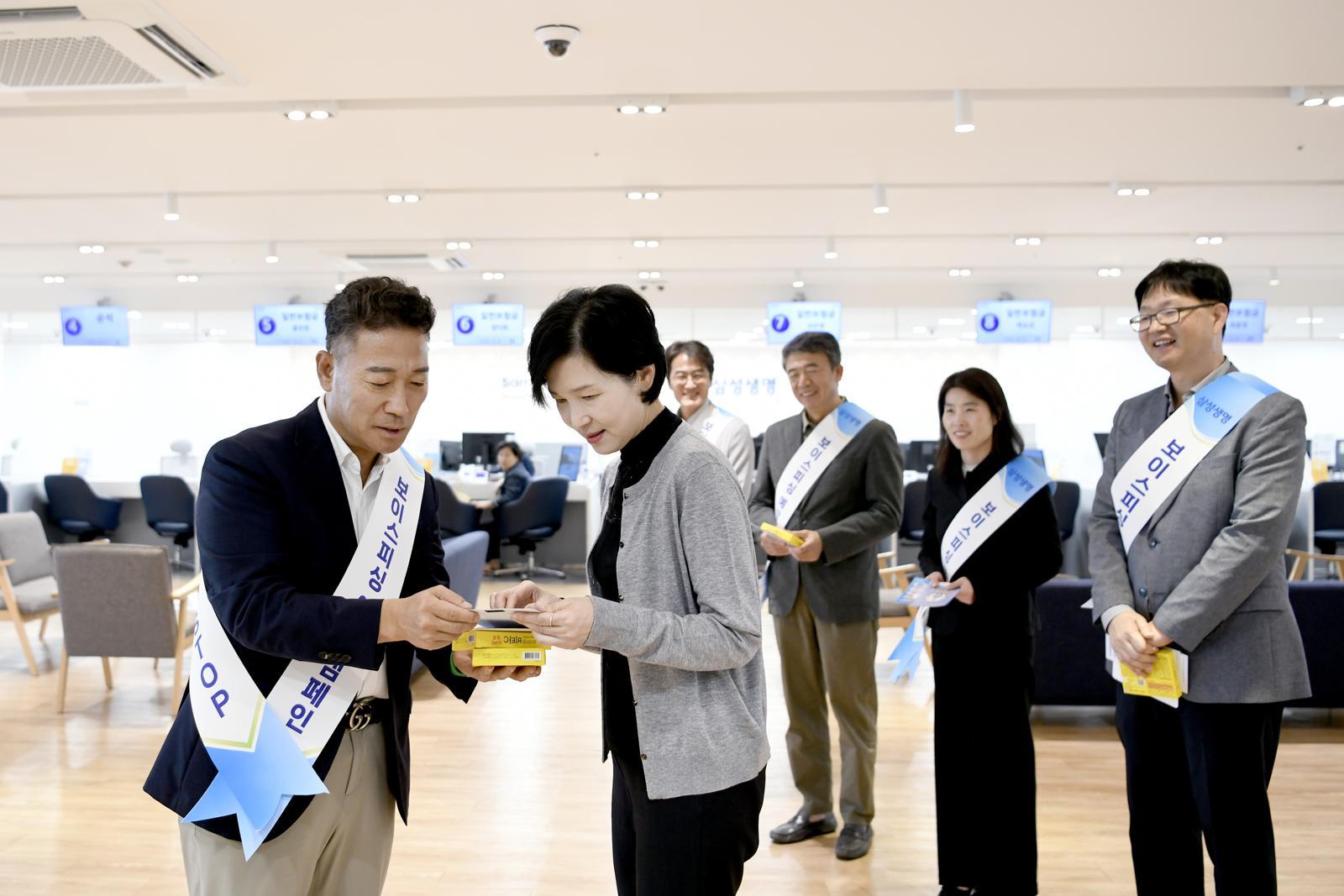 삼성생명 임직원들이 ‘보이스피싱 STOP 캠페인’에 참여하고 있다.이번 캠페인은 임직원들이 고객플라자 내방 고객들에게 보이스피싱 예방 자료를 전달하고 실제 사례를 중심으로 보이스피싱 대응 요령을 안내하는 방식으로 이뤄졌다. 보험설계사를 통해 상담을 받는 고객에게 보이스피싱 예방 안내가 적힌 냉장고 부착형 마그넷을 선물하기도 했다.