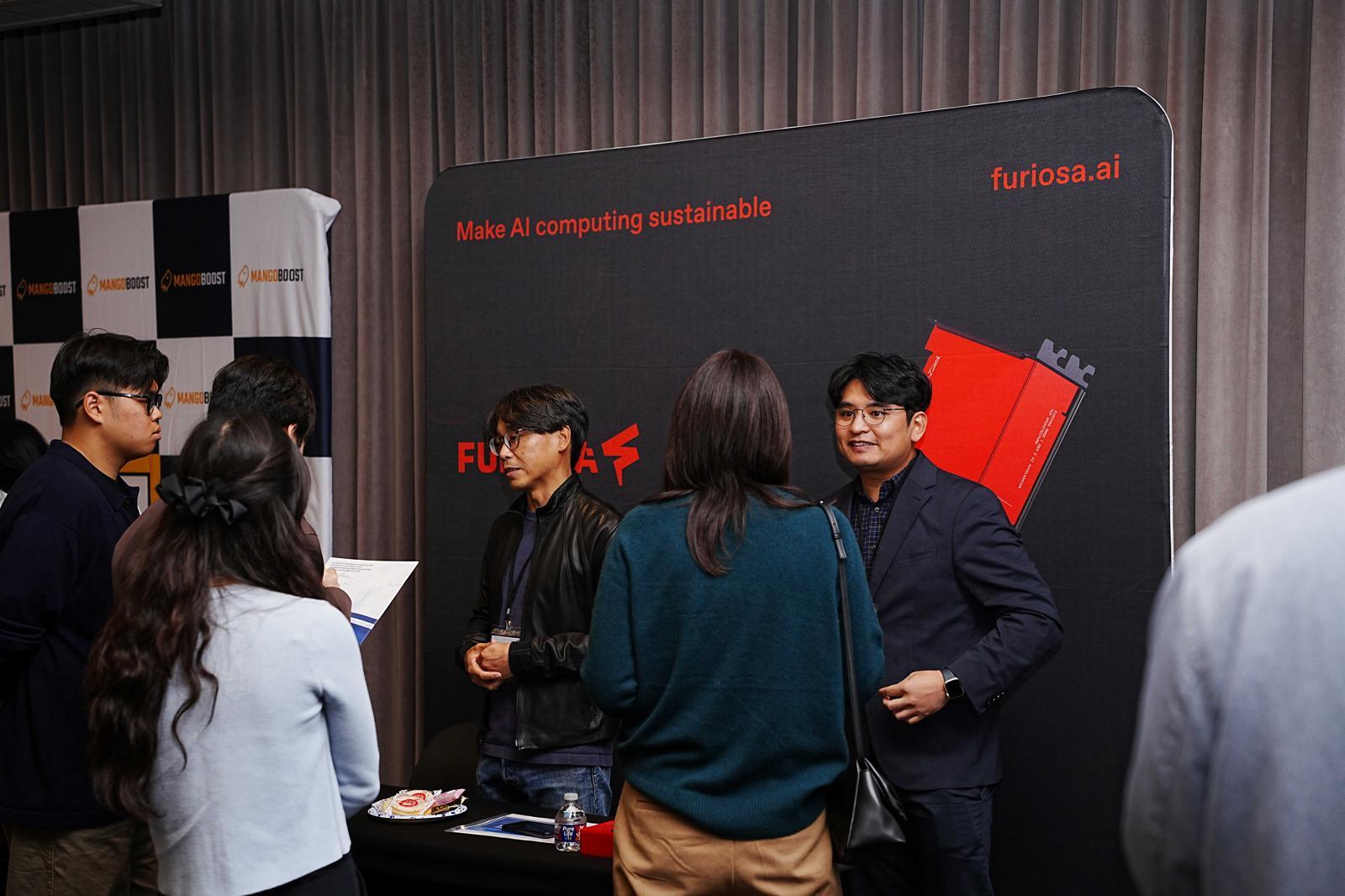 코트라는 지난 14일(현지 시간) 주샌프란시스코 총영사관과 함께 미국 실리콘밸리에서 첨단산업 인재 유치를 위한 ‘커리어 커넥트 인 AI 웨이브’ 행사를 열었다. 행사장에 마련된 참가 기업의 채용 홍보 및 상담 부스의 모습. 대한무역투자진흥공사 제공코트라는 지난 14일(현지 시간) 미국 실리콘밸리에서 글로벌 인공지능(AI)·반도체 인재들과 한국 및 글로벌 테크기업이 참가한 가운데 ‘커리어 커넥트 인 AI 웨이브’ 행사를 열고 첨단산업 인재에게 채용 정보를 제공하는 설명·상담회를 개최했다. 특히 첨단산업 분야 한인 유학생들의 반응이 뜨거운 가운데 상담 부스에서는 퓨리오사AI, 망고부스트, 솔트룩스 등 우리나라 AI·반도체 분야 유력 기업이 참가해 열띤 상담을 이어갔다.