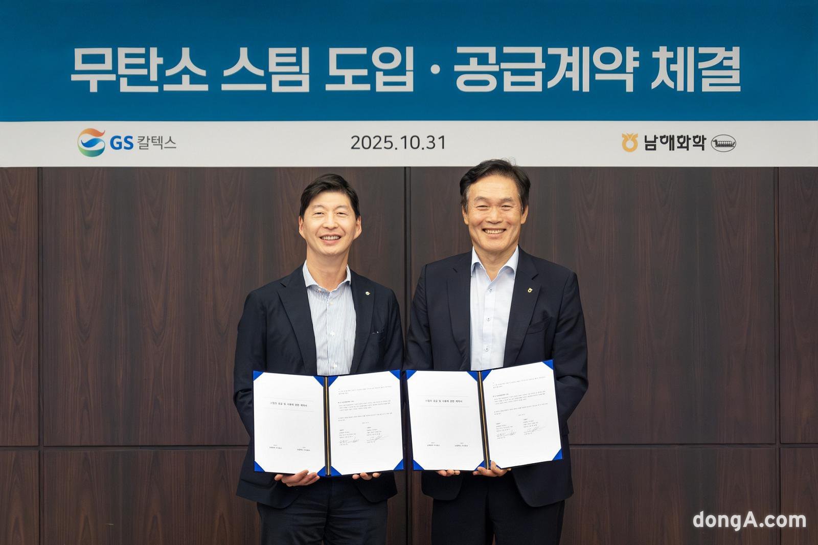 계약에 따라 GS칼텍스는 황산 원료인 유황을 공급하고 남해화학은 자사 황산공장 인프라를 활용해 무탄소 스팀을 생산·공급할 계획이다. 양사는 2027년 공급 개시를 목표로 하고 있으며 기존 LNG 기반 스팀 대비 연간 약 7만 톤의 이산화탄소 감축 효과가 예상된다고 전했다.