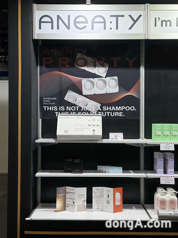 이번 전시에서 어니티는 브랜드 ‘프론티(Pronty)’ 라인의 대표 제품인 코스워시(Coswash) 1-day Kit와 프론티 보타니컬 헤어 앰플(Pronty Botanical Scalp Ampoule) 등 적은 양으로도 충분한 세정력, 두피 진정 및 열감 완화 효과를 강조한 혁신 기술을 공개하였다.