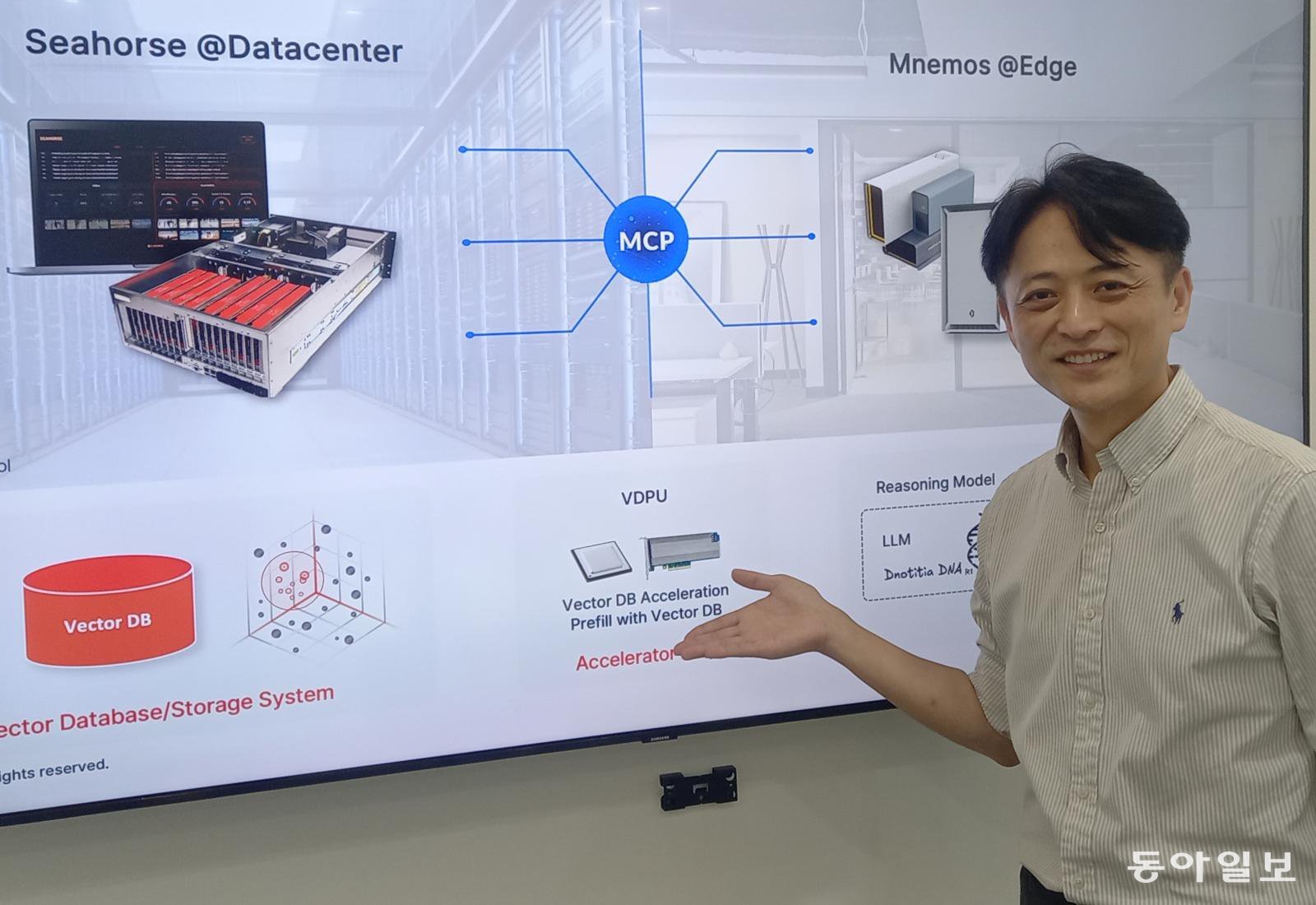 지난달 28일 서울 서초구 사무실에서 만난 정무경 디노티시아 대표이사(49)는 “실리콘밸리의 많은 벡터DB 회사들이 소프트웨어 위주로 자료를 처리하는 데 우리가 유일하게 전용 칩을 만들었다”며 “속도는 10배 더 빨라지고 데이터센터 비용은 80%나 절감할 수 있다”고 했다.
