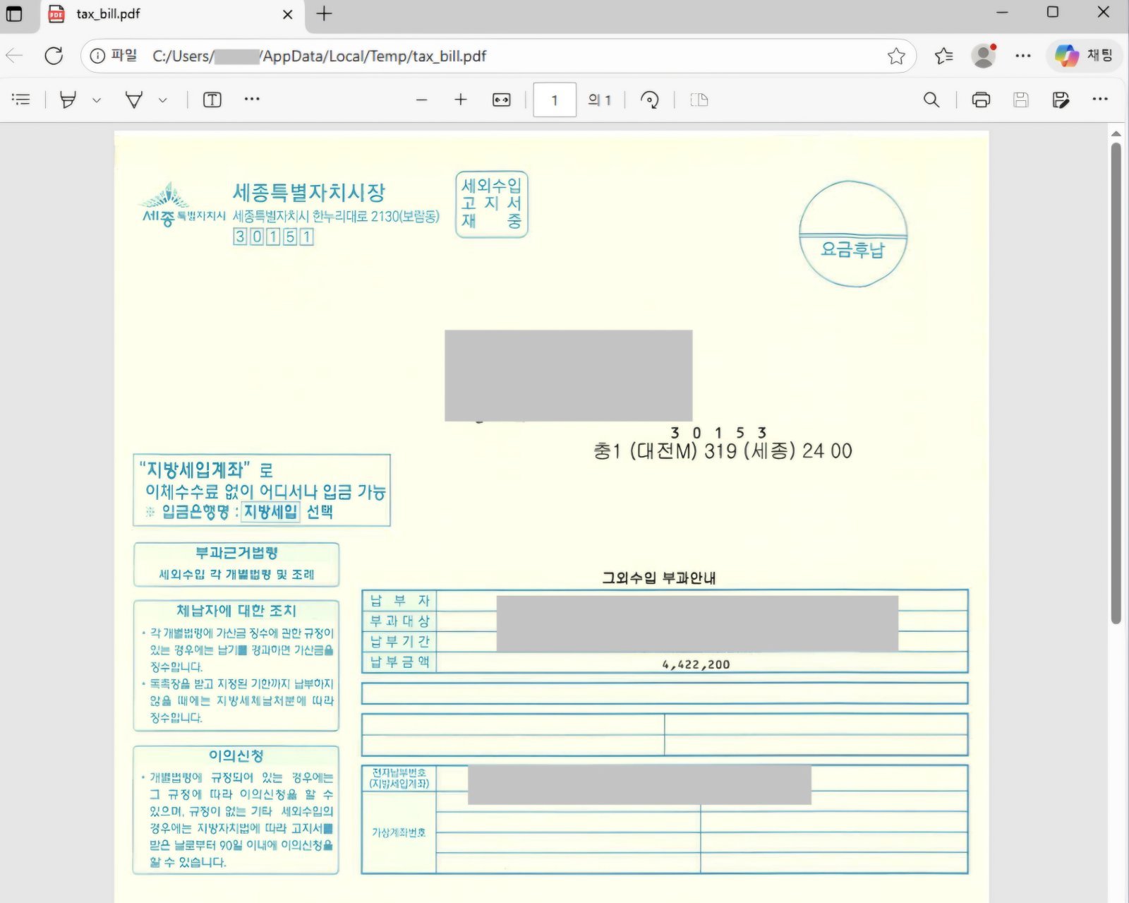 국세 고지서로 위장한 악성코드가 국내에서 유포되고 있어 이용자들의 각별한 주의가 요구된다. 보안업계는 해당 공격이 북한 정찰총국 산하 해킹 그룹 ‘김수키(Kimsuky)’와 연관된 것으로 의심한다.