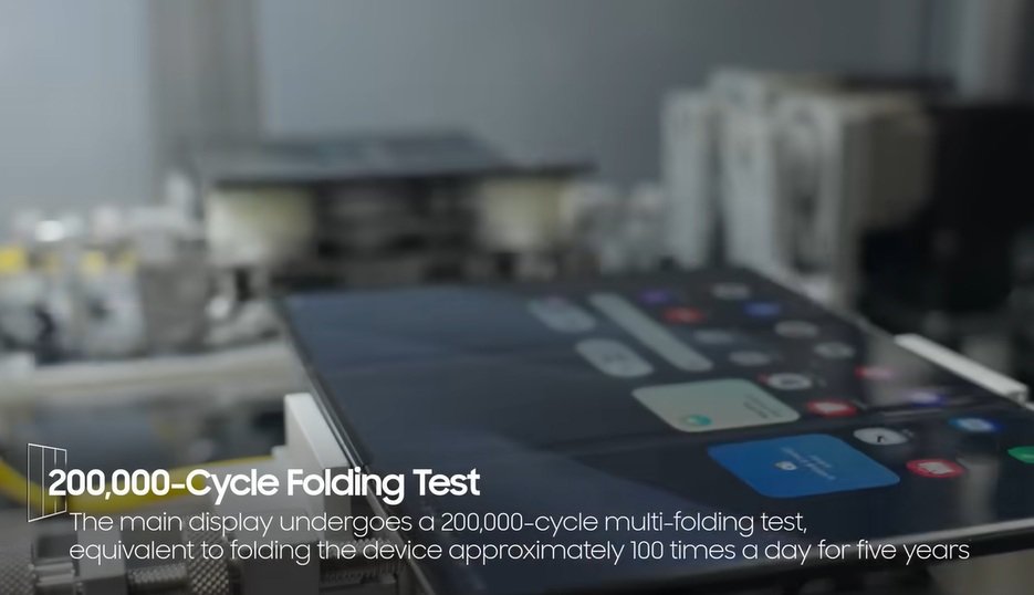 2번 접히는 트라이폴딩 구조의 특성상 갤럭시 Z 트라이폴드의 내구성은 기기 신뢰성의 핵심 과제로 지목돼왔다. 삼성전자는 공개된 영상을 통해 메인 디스플레이가 장기간의 사용에도 견딜 수 있도록 20만 회에 달하는 반복적인 접힘 테스트를 거쳤다고 밝혔다.