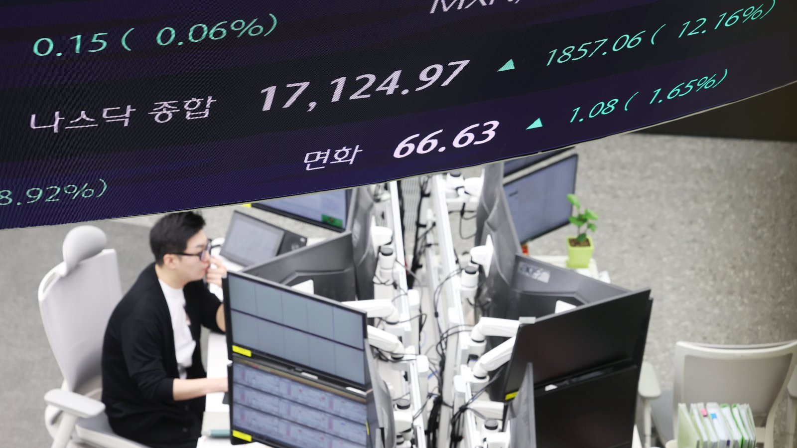 10일 서울 중구 하나은행 딜림품 전광판에 나스닥 지수가 표시되고 있다. 도널드 트럼프 미국 대통령이 중국을 제외한 모든 국가에 상호 관세 부과를 90일간 유예하겠다는 방침을 밝히면서 나스닥을 비롯한 3대 증시 지수가 폭등했다. 나스닥 지수는 전장보다 1,857.06포인트(12.16%) 급등한 17,124.97에 마감했다. 2025.04.10. [서울=뉴시스]