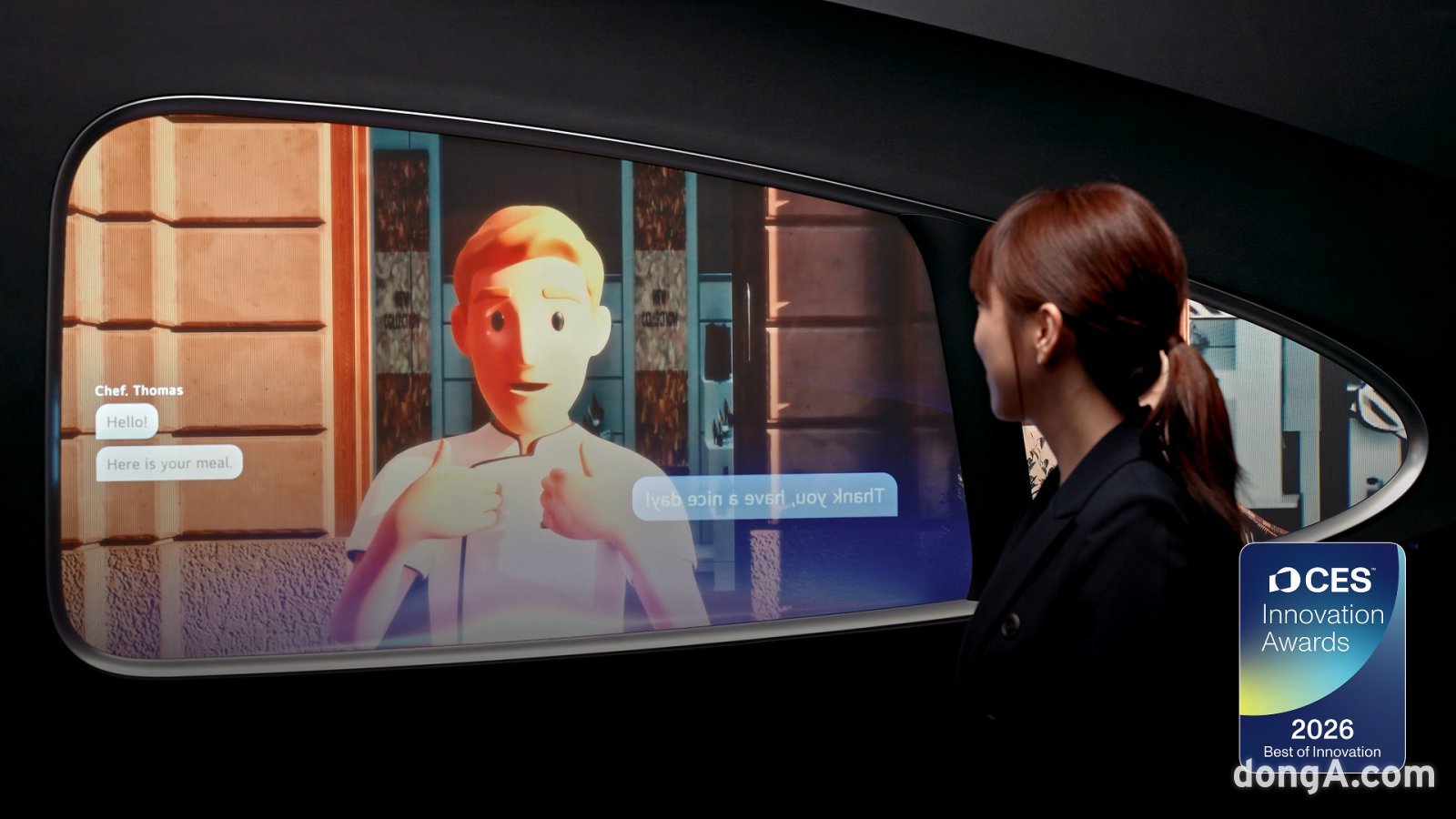 세 번째 ‘엔터테인먼트 존’에서는 뒷좌석 탑승자를 위한 개인 맞춤형 기능을 체험할 수 있다. AI가 바깥 풍경을 인식해 관련된 추억 사진을 보여주거나, 가족과 영상통화를 연결해주는 기능도 있다. 또 점원과 대화 중 상대가 수어를 사용하면 AI가 이를 실시간으로 자막으로 변환해 화면에 띄운다.