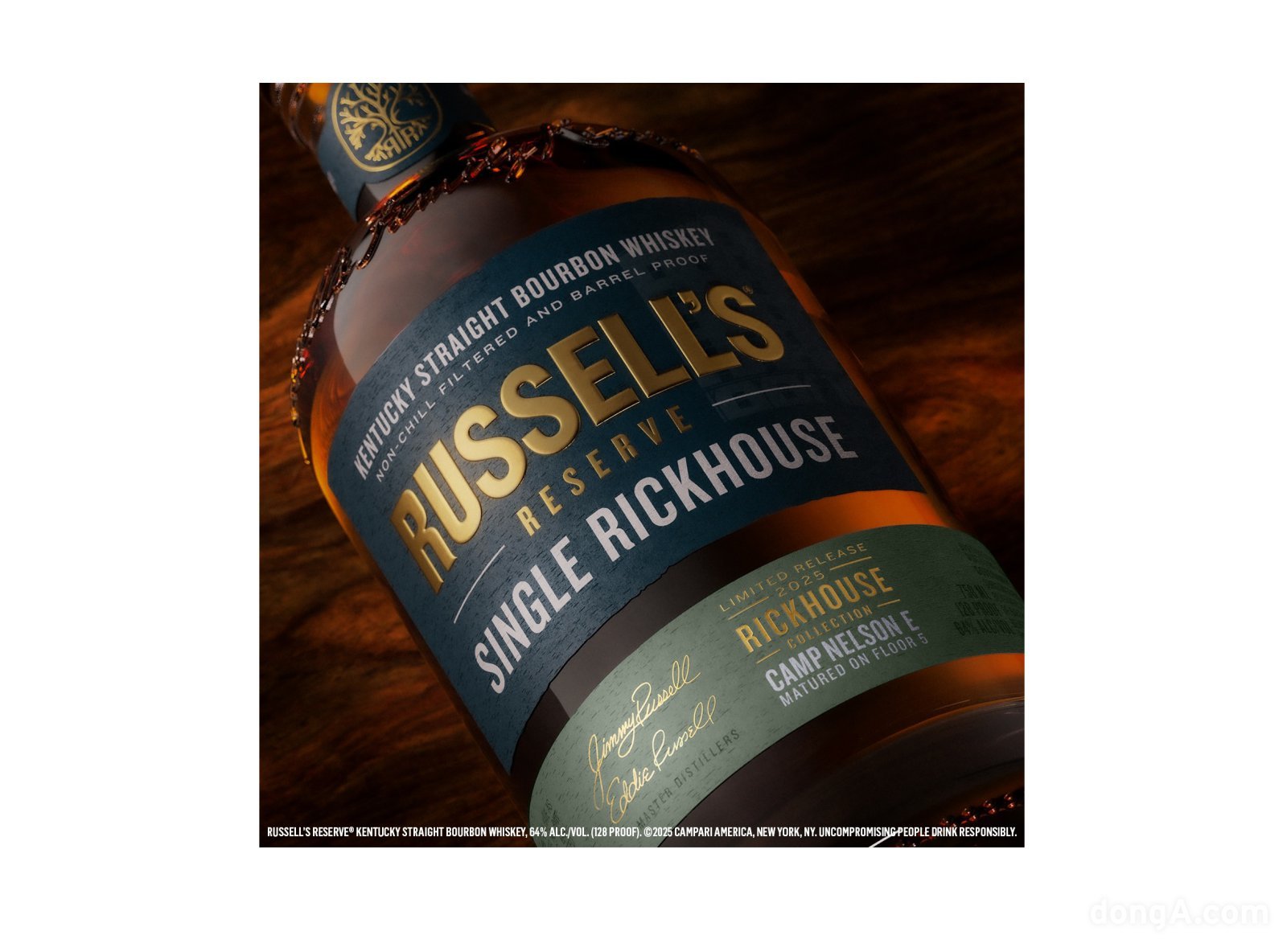 캄파리코리아는 17일 ‘러셀 리저브 싱글 릭하우스 2025 캠프 넬슨 E 에디션’을 국내 시장에 처음으로 선보인다고 밝혔다. 이번 신제품은 도수 128프루프(알코올 64%)의 배럴 프루프 버번으로, 냉각 여과 없이 그대로 병입해 원액의 풍미를 온전히 담았다고 한다.