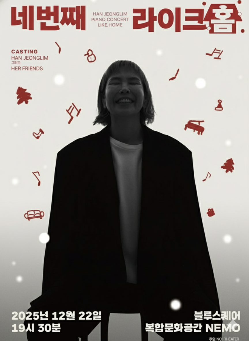 이번 공연은 70분 동안 진행되며 전체 관람가로 누구나 즐길 수 있다. 티켓 구매는 12월 17일 오후 3시부터 인터파크를 통해 진행됐다. 콘서트 관계자는 “Like, Home은 올겨울 가장 조용하고 깊은 위로가 될 것으로 기대된다”고 말했다.