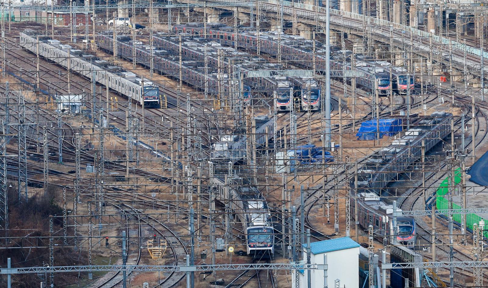 성과급 정상화를 요구하는 전국철도노동조합(철도노조)의 총파업을 하루 앞둔 22일 서울 구로구 한국철도공사 구로차량사업소에 열차가 이동하고 있다. 2025.12.22/뉴스1