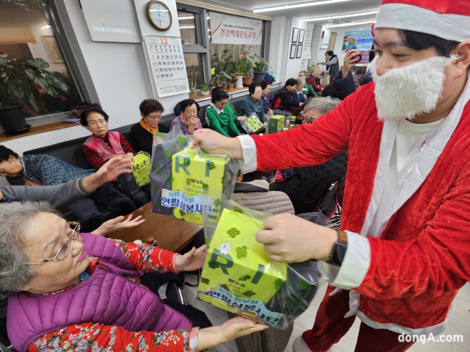 지난 19일 봉사단은 우리쌀 간편식(쌀국수) 100세트와 홍삼캔디 86개를 담아 전달, 주기적 방문봉사도 약속했다. 특별히 연말 온기를 더하고자 산타복장을 입고 말벗 봉사활동 진행하면서 어르신들과의 정서적 교감을 나눴다는 게 주최 측 설명이다.