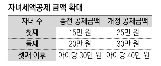 2025년 귀속 연말정산에서는 생활과 밀접한 제도 변화가 눈에 띈다. 먼저 자녀 세액공제가 확대돼 첫째 25만 원, 둘째 30만 원, 셋째 이후는 1인당 40만 원까지 공제받을 수 있다. 고향사랑기부금은 특별재난지역에 한해 공제율이 30%로 상향되고 공제 한도도 2000만 원까지 크게 늘었다.